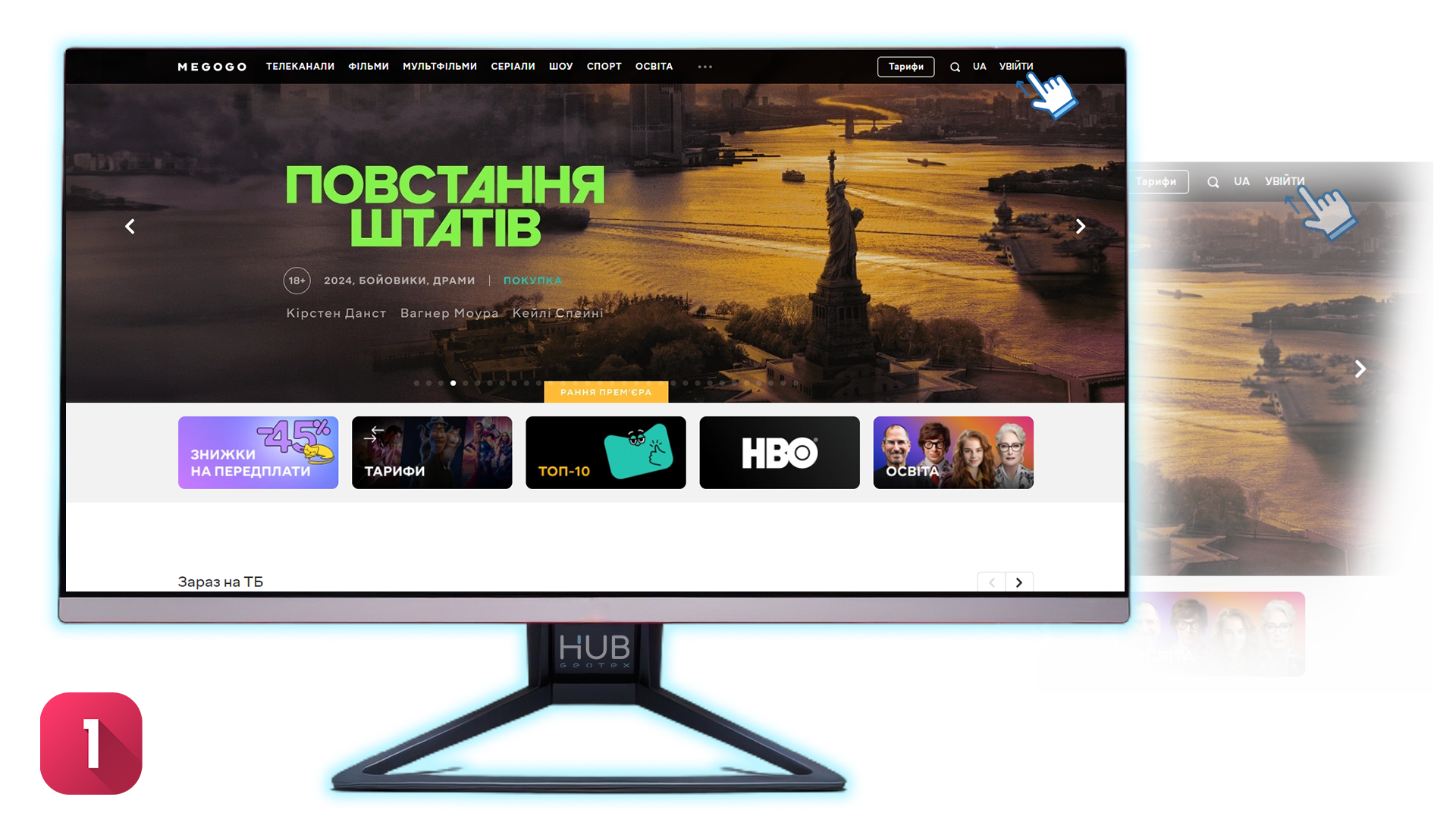 Відкрийте додаток Megogo на своєму пристрої або перейдіть на сайт Megogo для того, щоб Увійти до існуючого кабінету або зареєструватися, якщо у вас ще немає дійсного аккаунта.